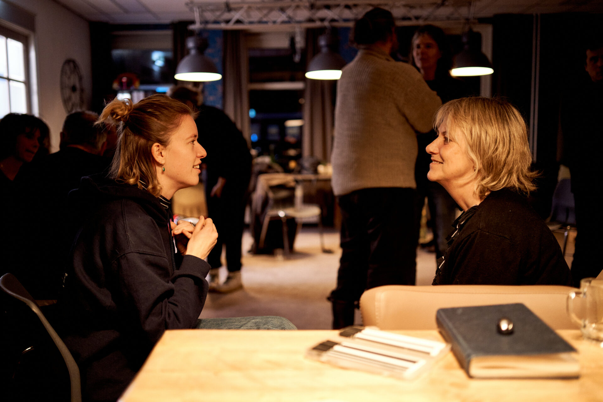 Een divers gezelschap blijkt te zijn aangeschoven; van een beeldend kunstenaar die schildert, werkt met klei maar ook schrijft, tot een ondernemer in de civiele techniek die zich vanuit Dorpsbelangen hard maakt voor het vergroten van de leefbaarheid in het dorp. Een ambtenaar die zich op meerdere vlakken als vrijwilliger inzet in het dorpsleven, en een ondernemer in de bouw, die naar eigen zeggen geïnspireerd wordt door alles om hem heen; van muziek tot oude auto’s.