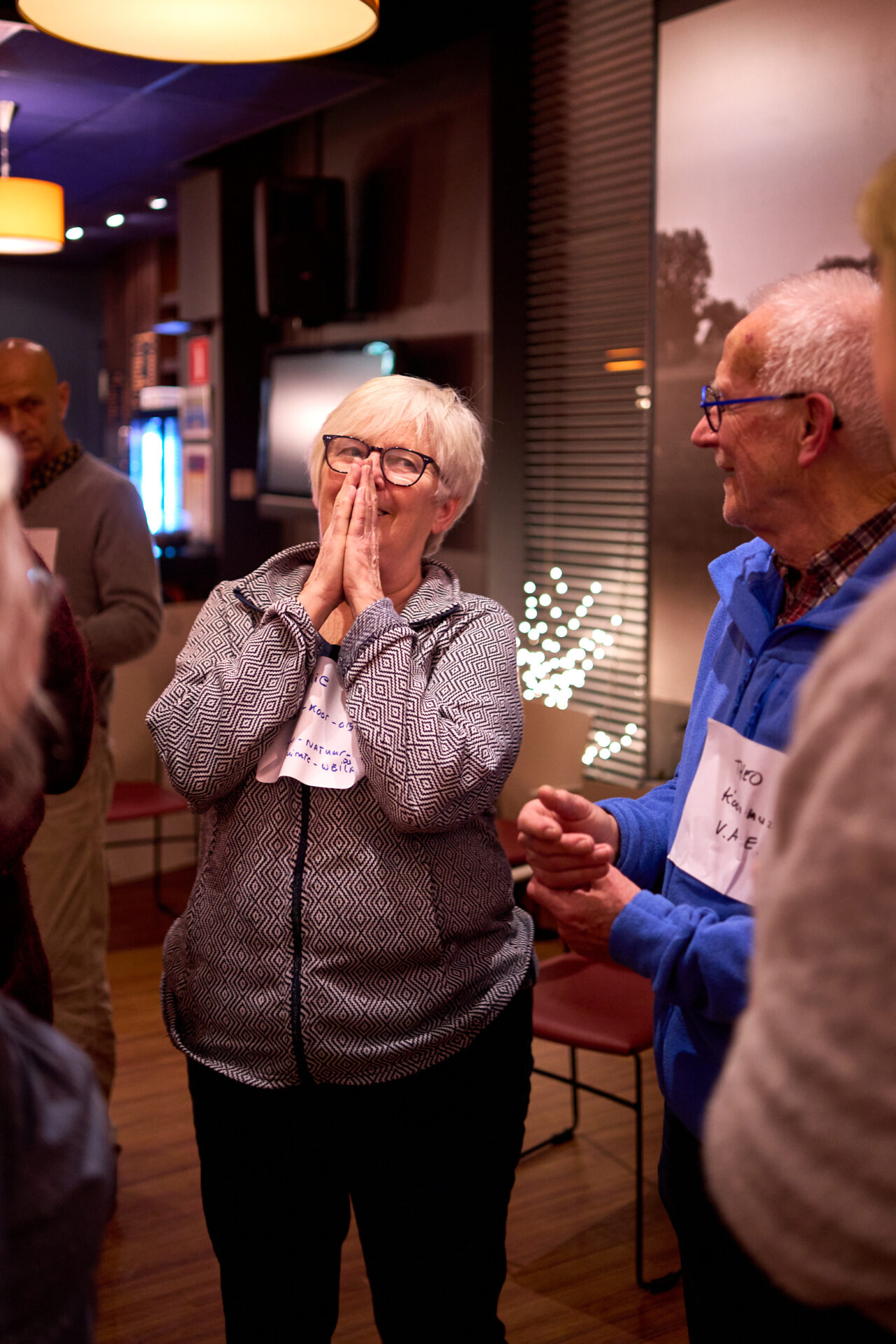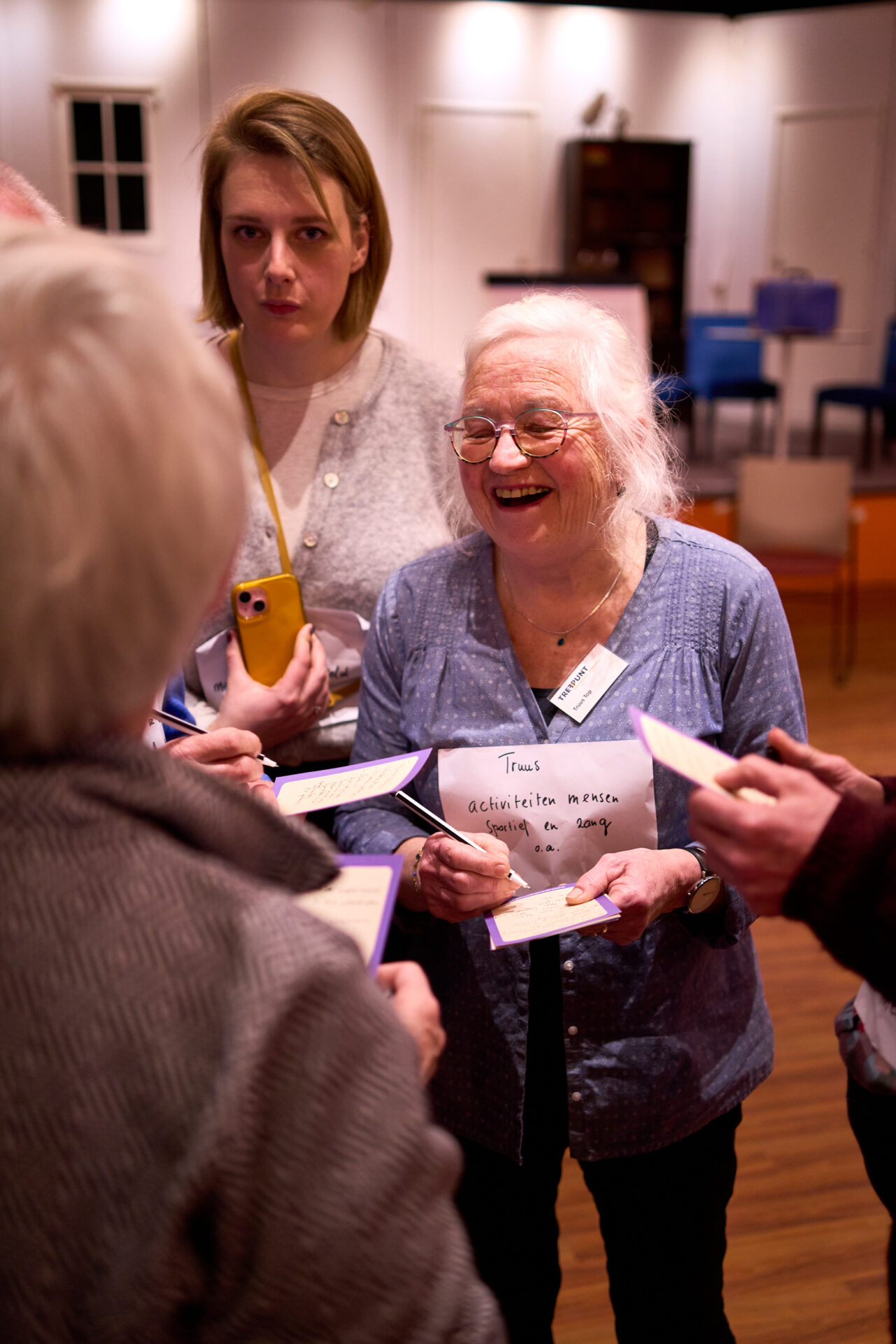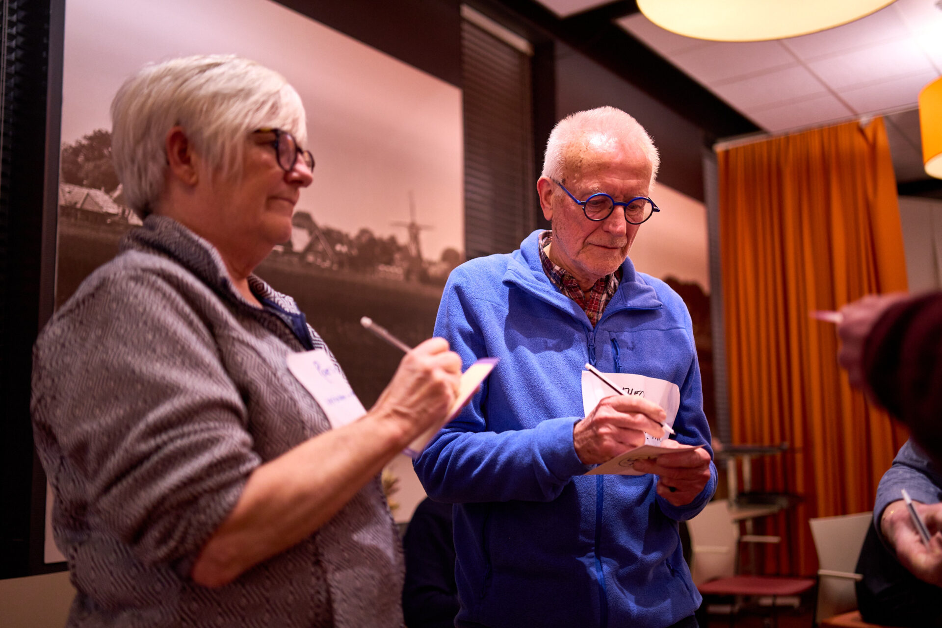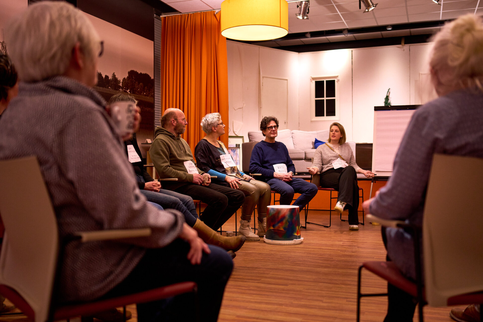 Wat volgt is een zaal vol zang, muziek en gesprekken. Het lijkt een lastige opgave, maar na een klein half uur is iedereen klaar. Sara: ,,Als afsluiting van deze avond laten we aan elkaar zien wat we hebben bedacht en gemaakt.”