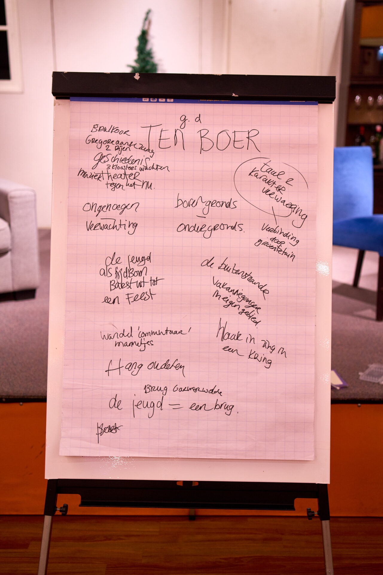 Op 26 februari bezocht een groep nieuwsgierige inwoners van gebiedsdeel Ten Boer het Dorpshuis in Thesinge. Samen met het team van Gronings Vuur gingen ze op een creatieve manier aan de slag gaan met verhalen uit dit gebied. Lees hier de opbrengsten van deze waardevolle avond. En voor in de agenda: op woensdag 12 maart is de tweede creatieve werkplaats, ditmaal in Garmerwolde. Belangstellenden – ook jongeren – zijn hier van harte welkom.