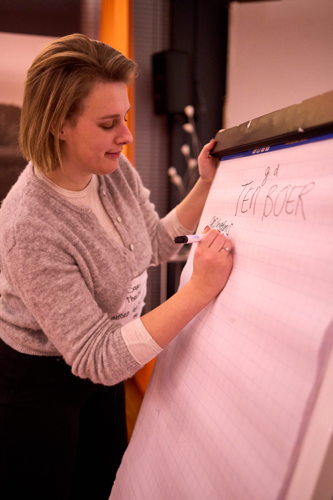 Na luid applaus door en voor iedereen vraagt Sara elk groepje om nog toe te lichten wat ze hadden bedacht.