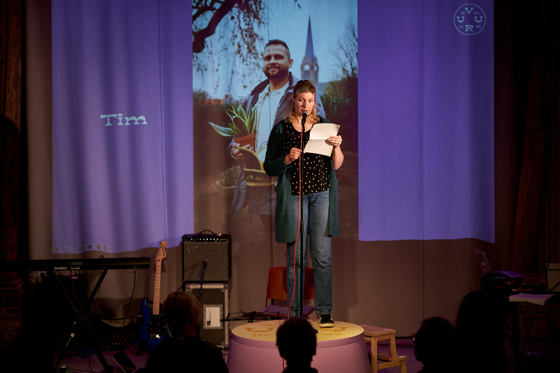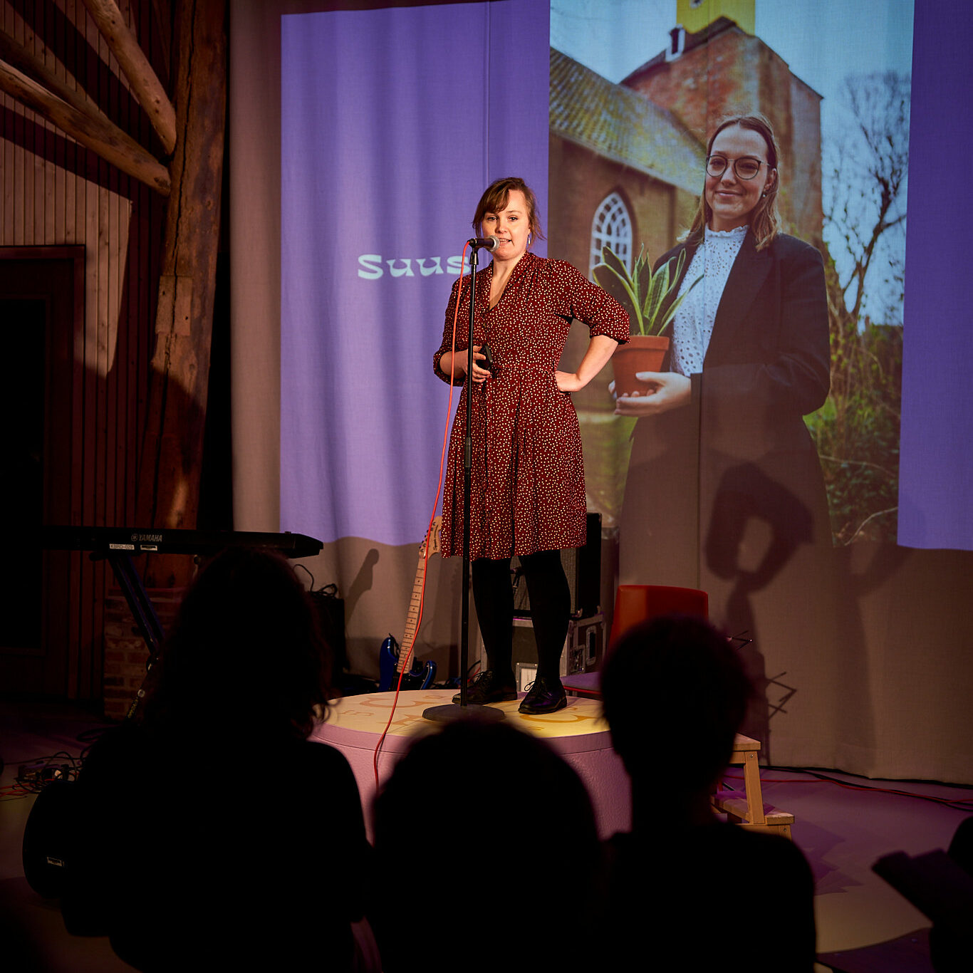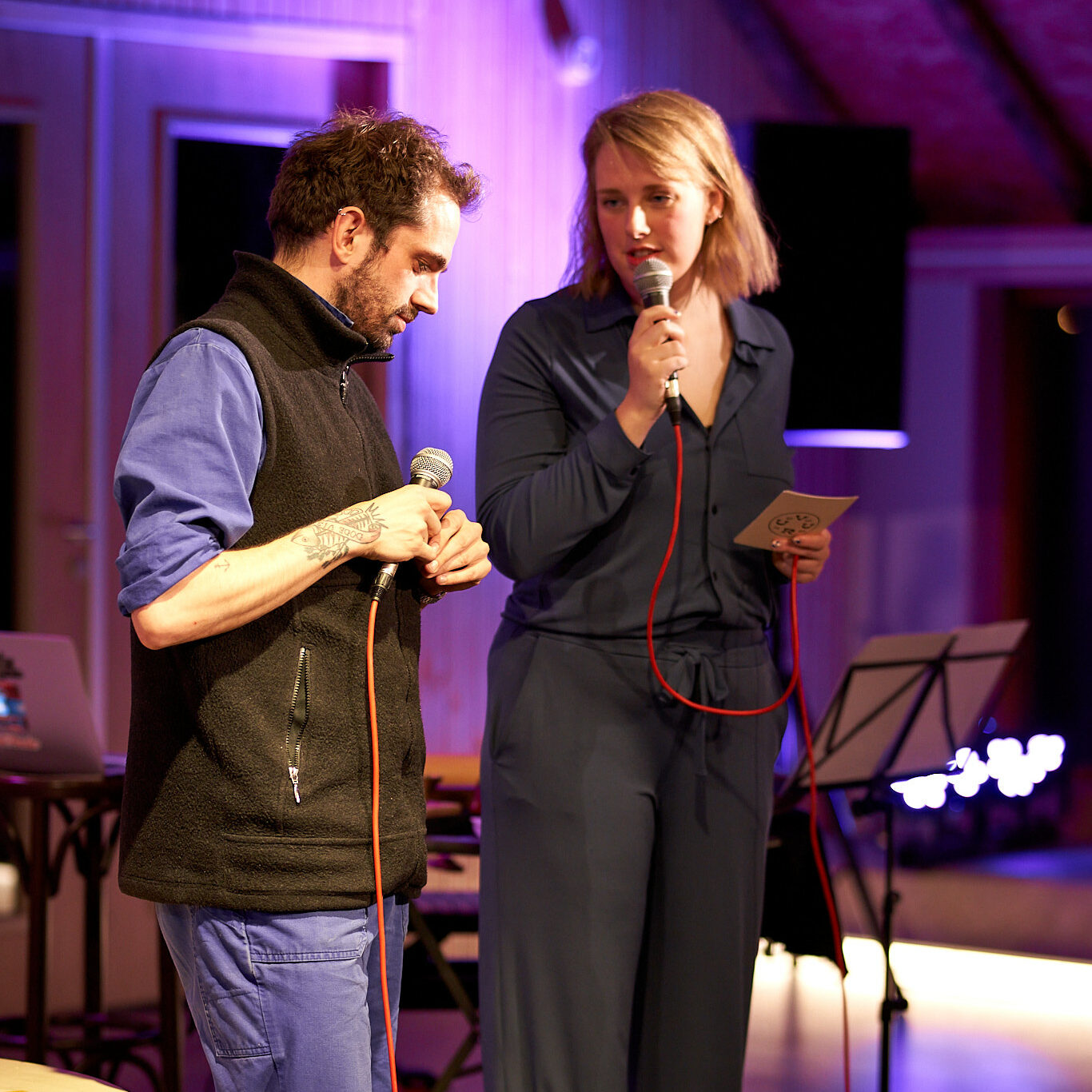 Sara Scholten, theatermaker en gespreksontwerper, presenteert deze avond samen met cultureel aanjager in deze gemeente, Wilbert van de Kamp.