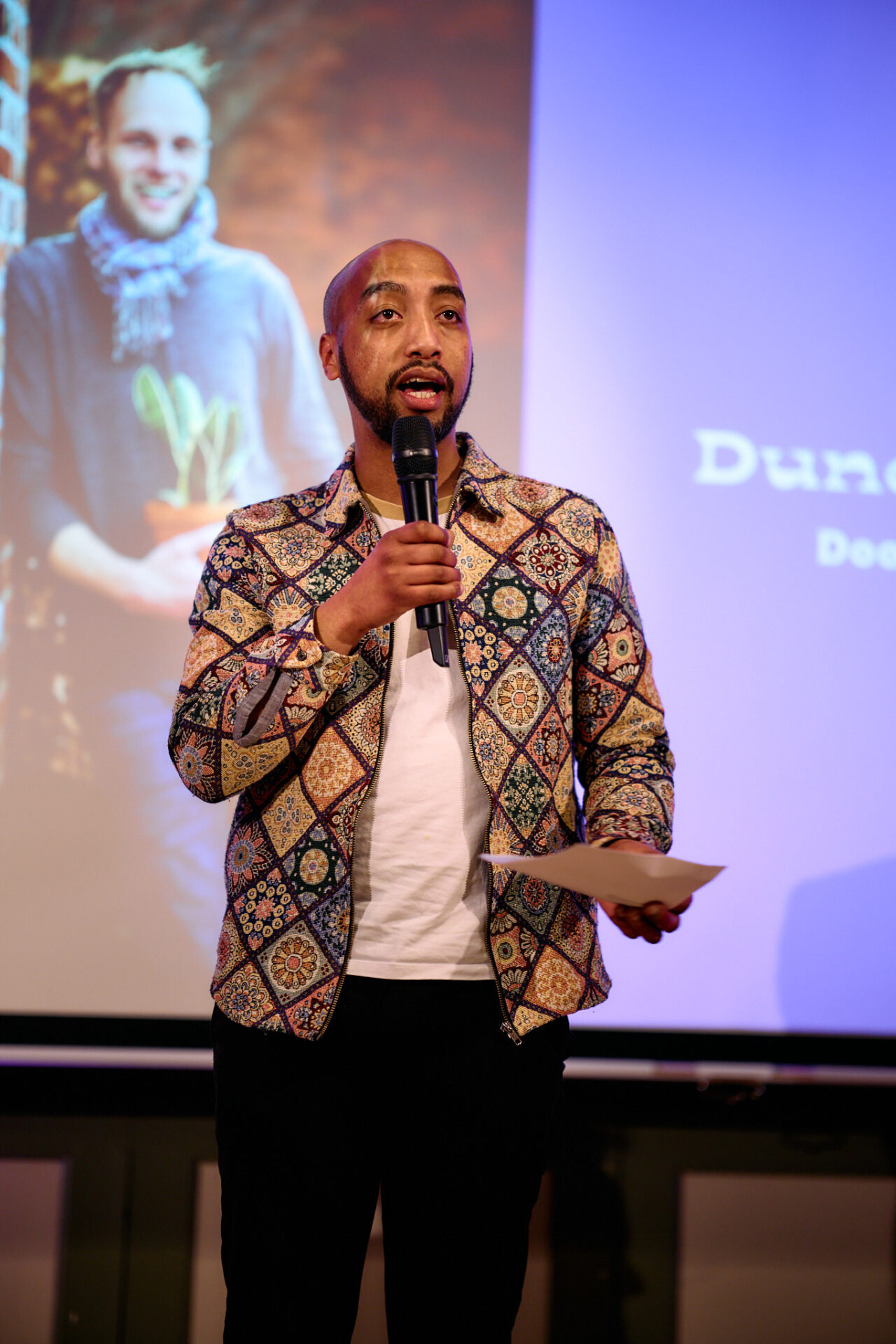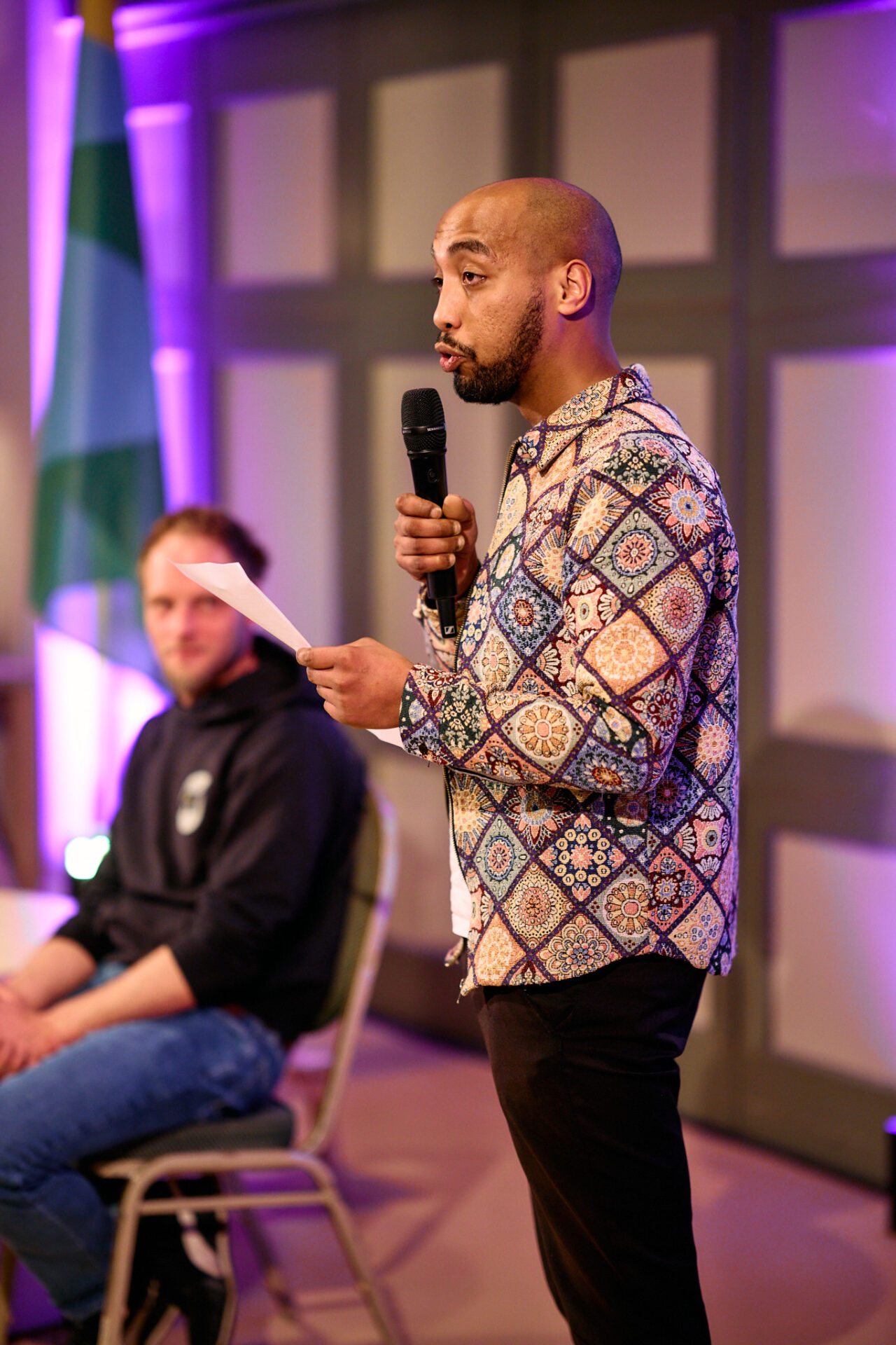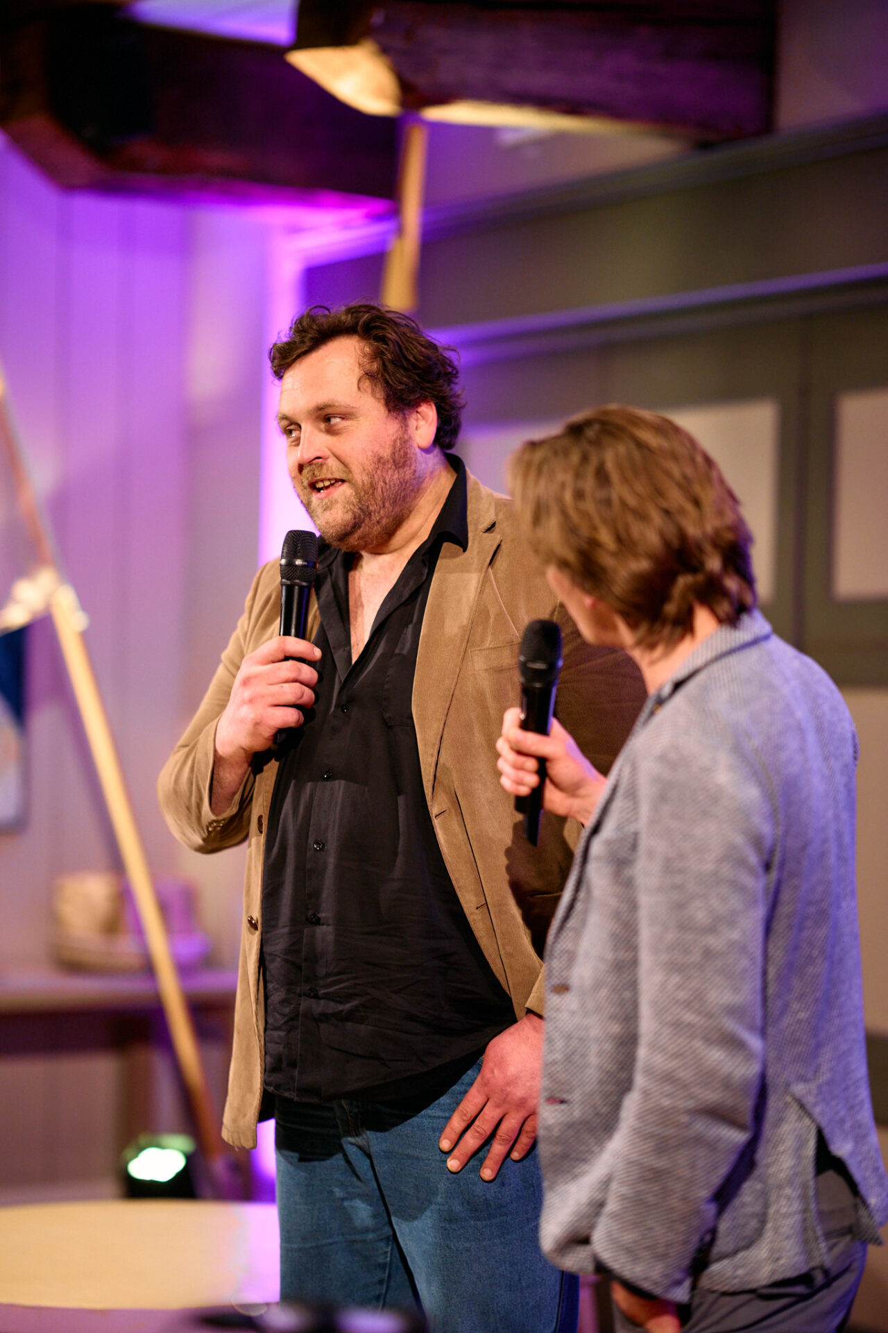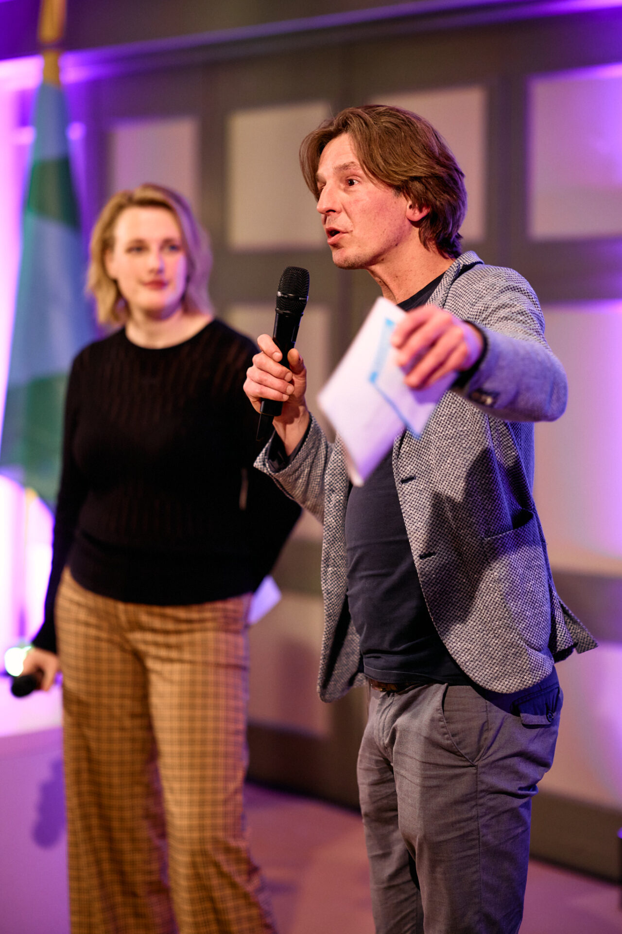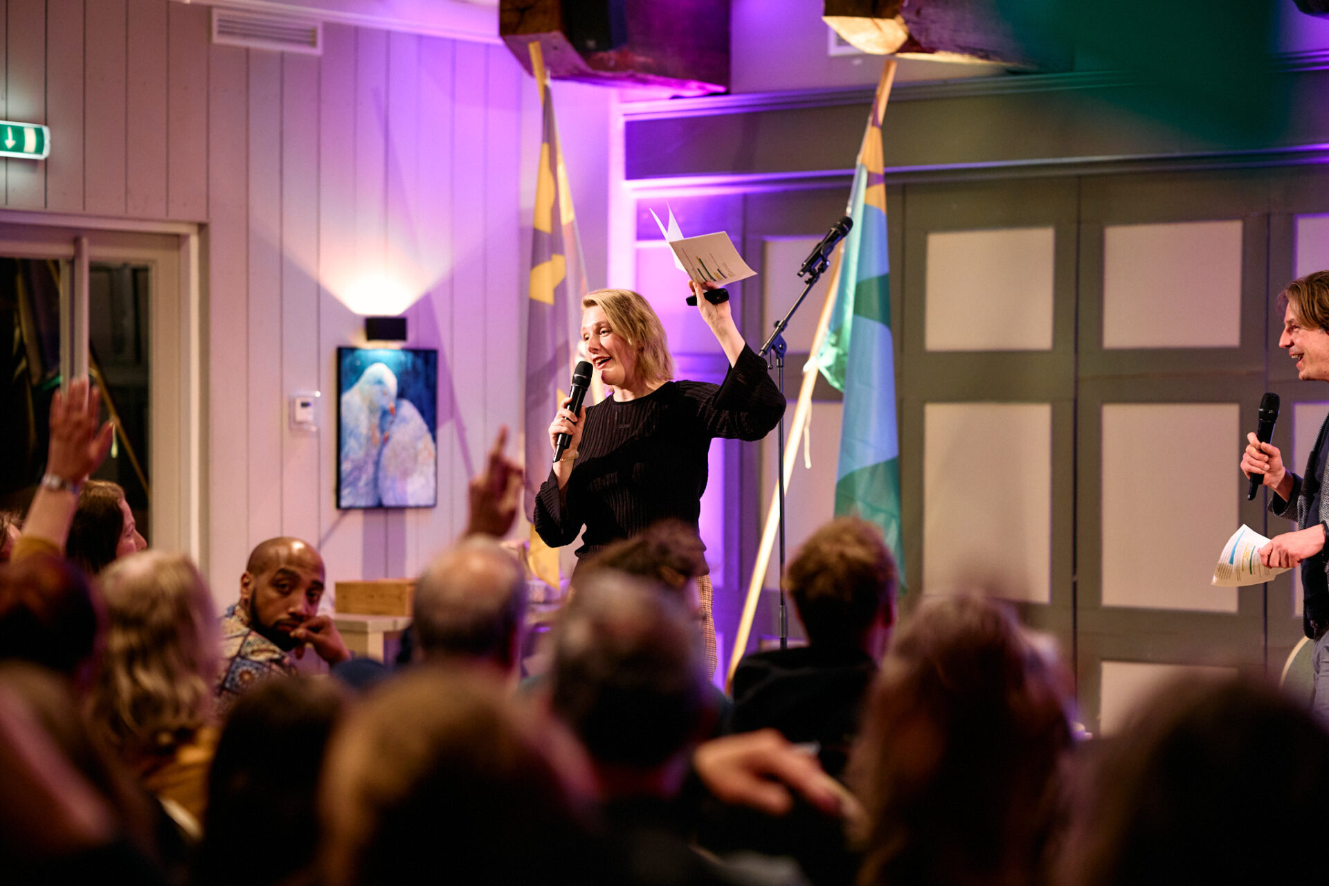 Sara Scholten (namens Gronings Vuur) en Wessel Spijkerman (Kunstkwartier) leiden de avond in goede banen en heten iedereen welkom.
