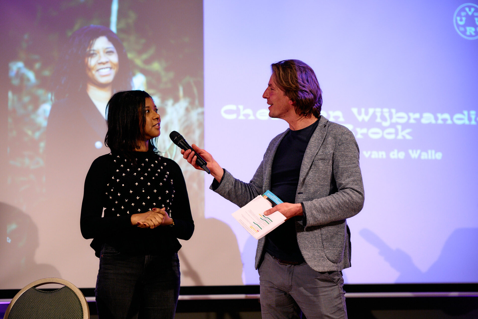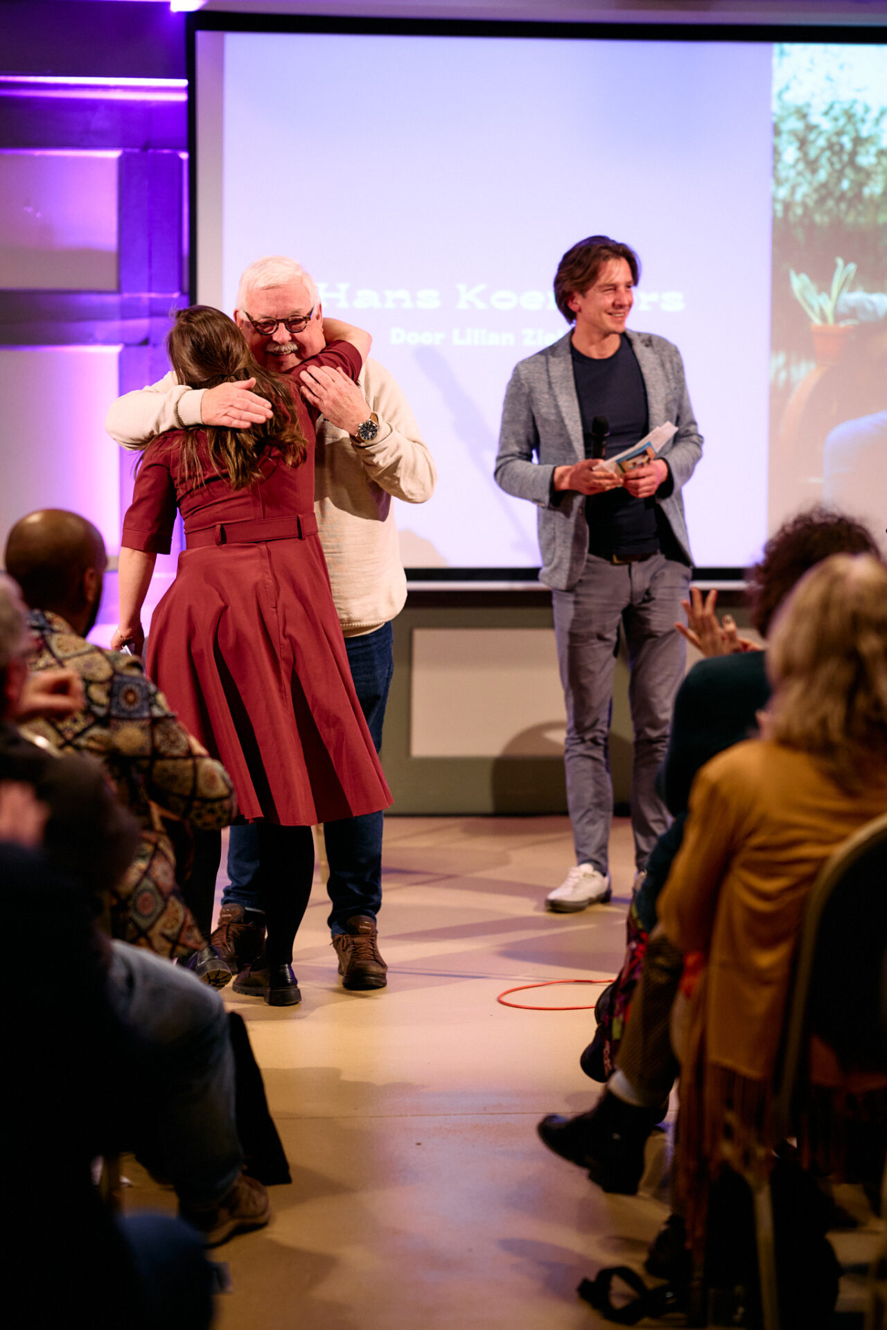 Wessel: ,,Dankjewel Willemijn. Cherelien, hoe was het om te ontvangen?” ,,Ik had ergens ja op gezegd, ben gewoon gaan praten, daar is iets heel moois uitgekomen”, antwoordt ze. ,,Ze kwam bij me langs, legde een loper op tafel en plaatste een plant waar ik ook mee op de foto ben geweest, om een sfeer te creëren. We begonnen gewoon te praten. Voor mijn gevoel ging het alle kanten op. Bijzonder hoe alles samenkomt in zulke mooie zinnen. Mooi, het is goed weergegeven.”