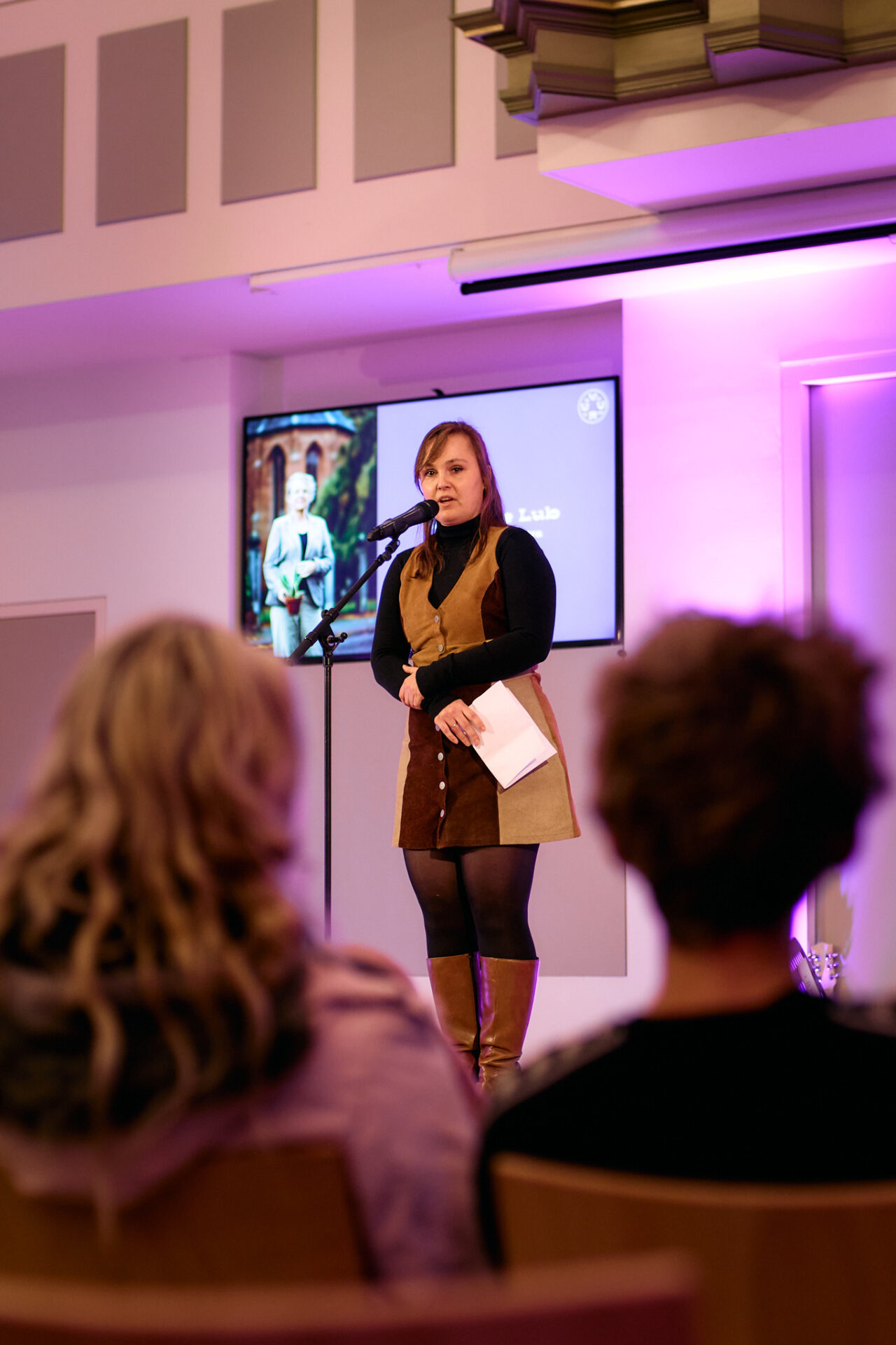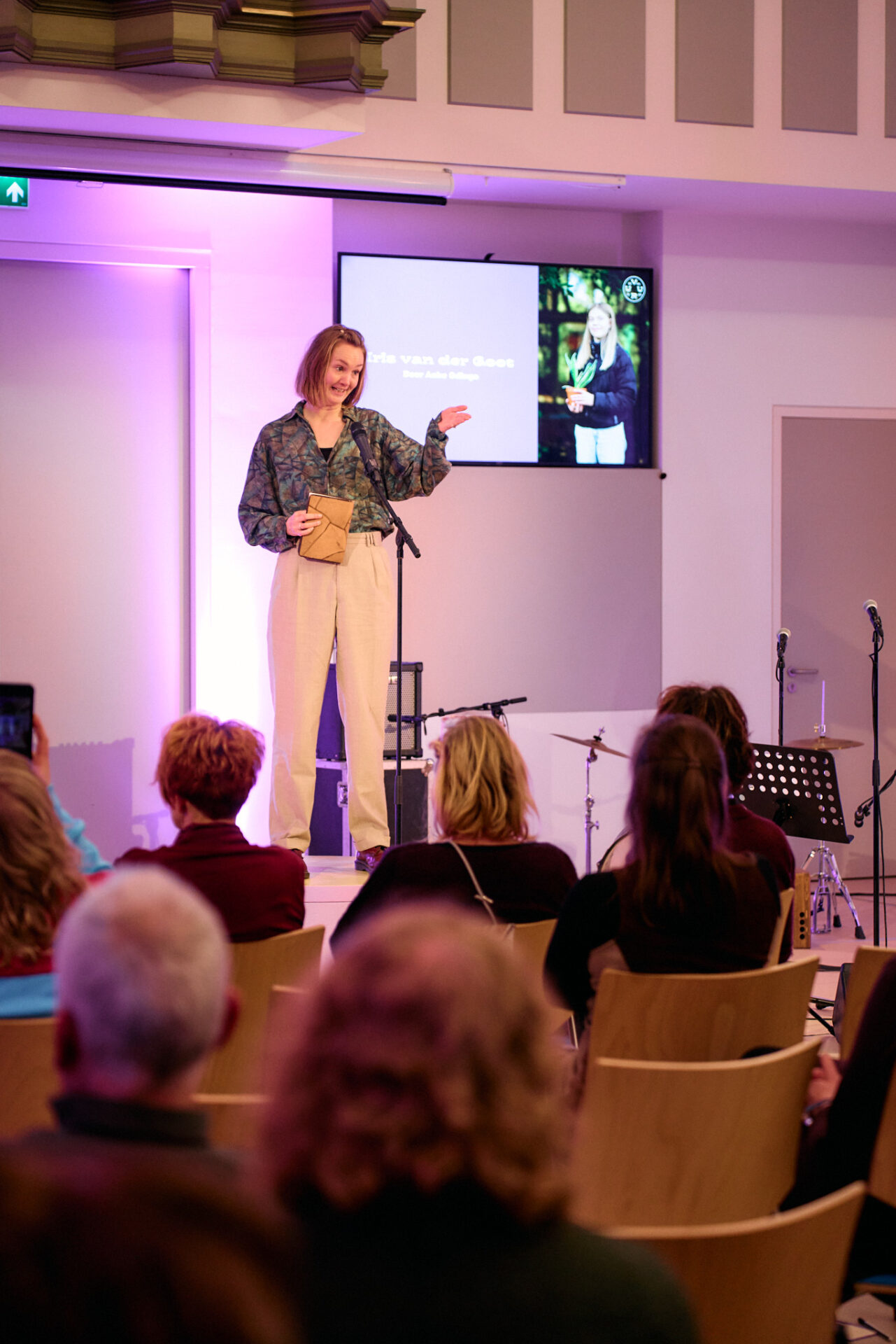 Dichter Lilian Zielstra betreedt daarna het podium. ‘Fuga in landschap’ is de titel van haar gedicht voor organist Leonore Lub, die in Noordbroek tegenover de kerk met ,,één van de meest bijzondere orgels” woont.