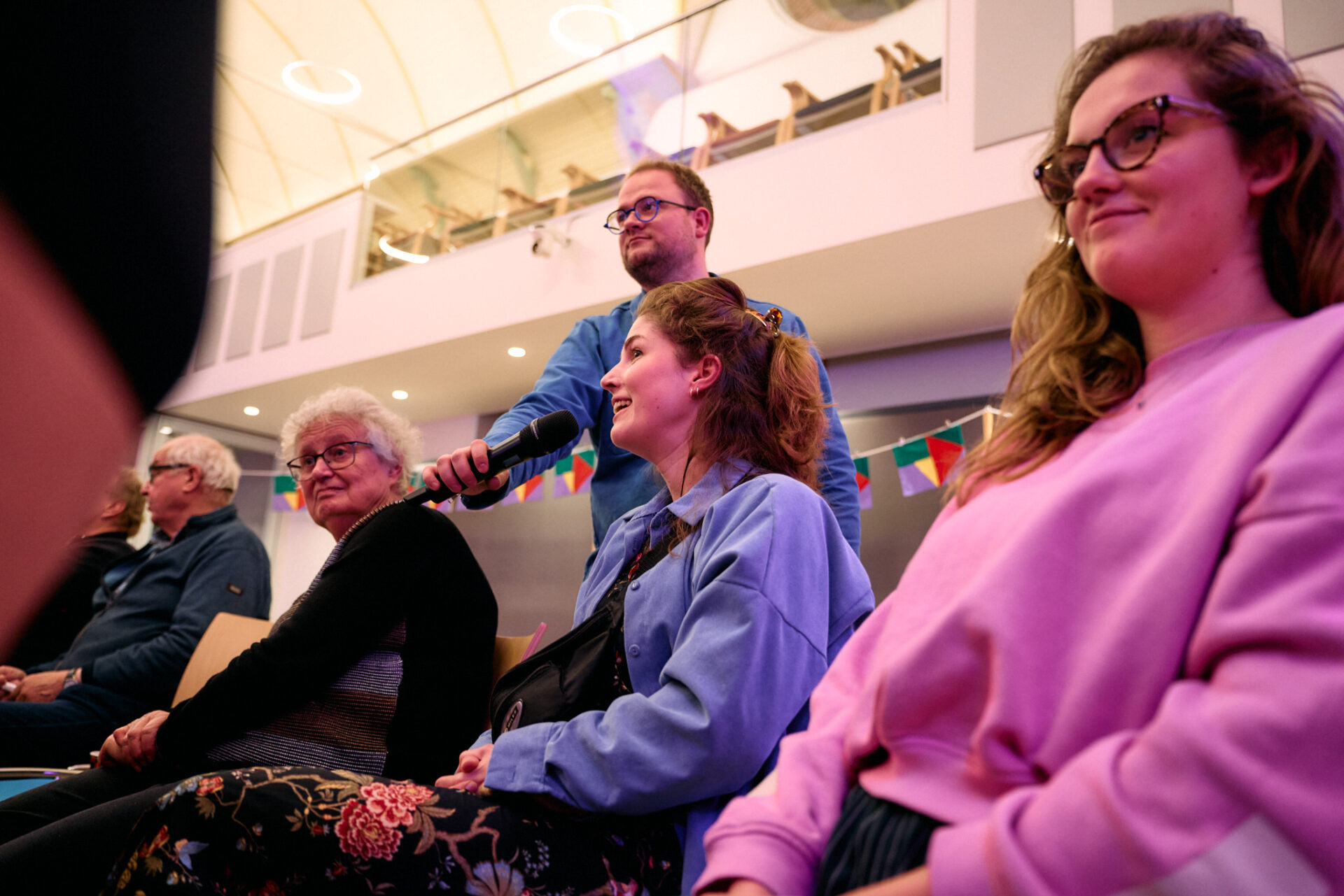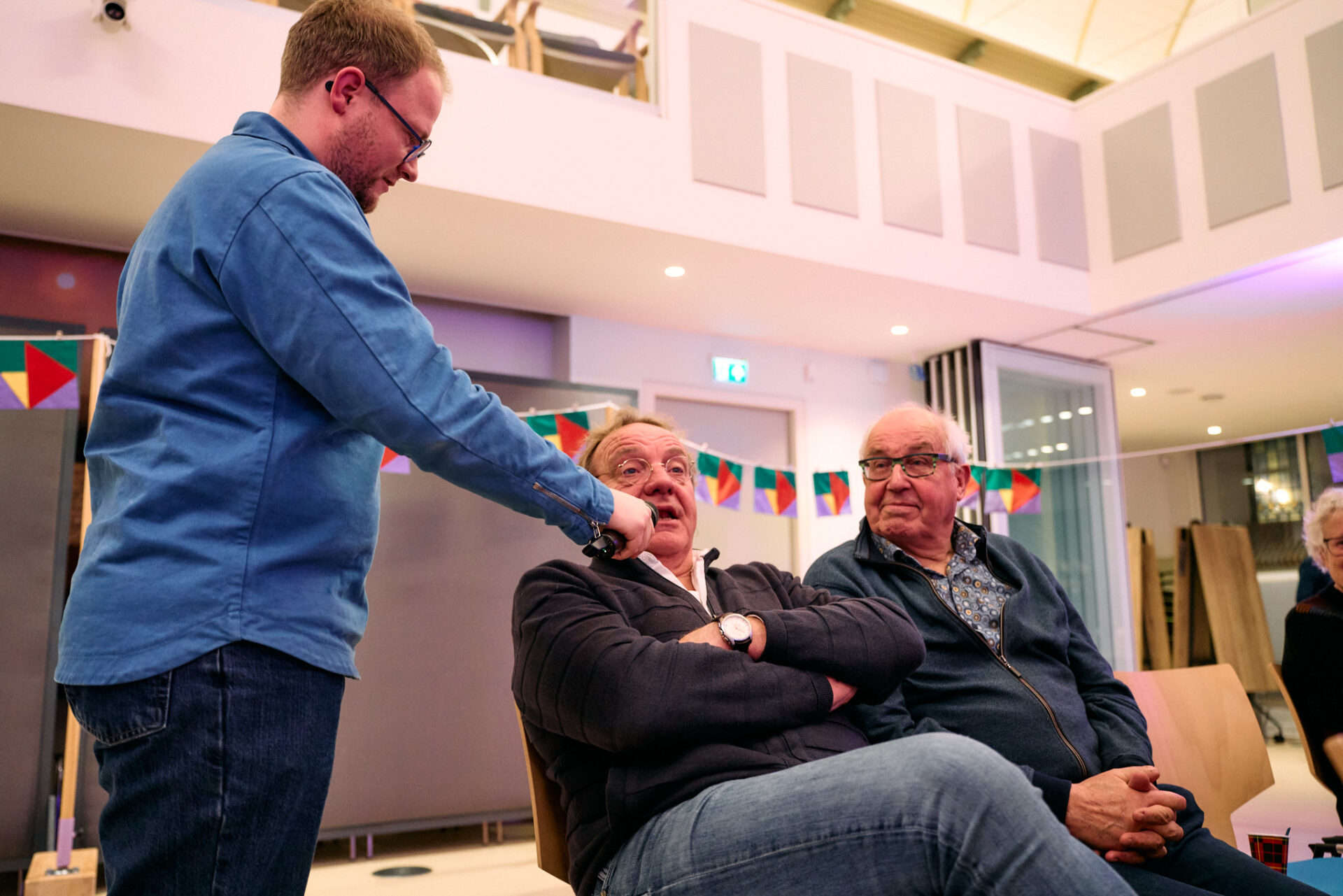 ,,De gemeenschapszin is groot, maar wel binnen de eigen grenzen”, legt ze als stelling voor. Terwijl er juist wel behoefte aan verbinding lijkt te zijn. Hoe doe je dat? Er was een idee voor wereldmuziek op het Knuppelpad. Of ouderen die bij jongeren achterop een fatbike samen naar een festival gaan. Dit werd een scène met een geestig karakter, maar wel met verbinding als hoofdmoot.