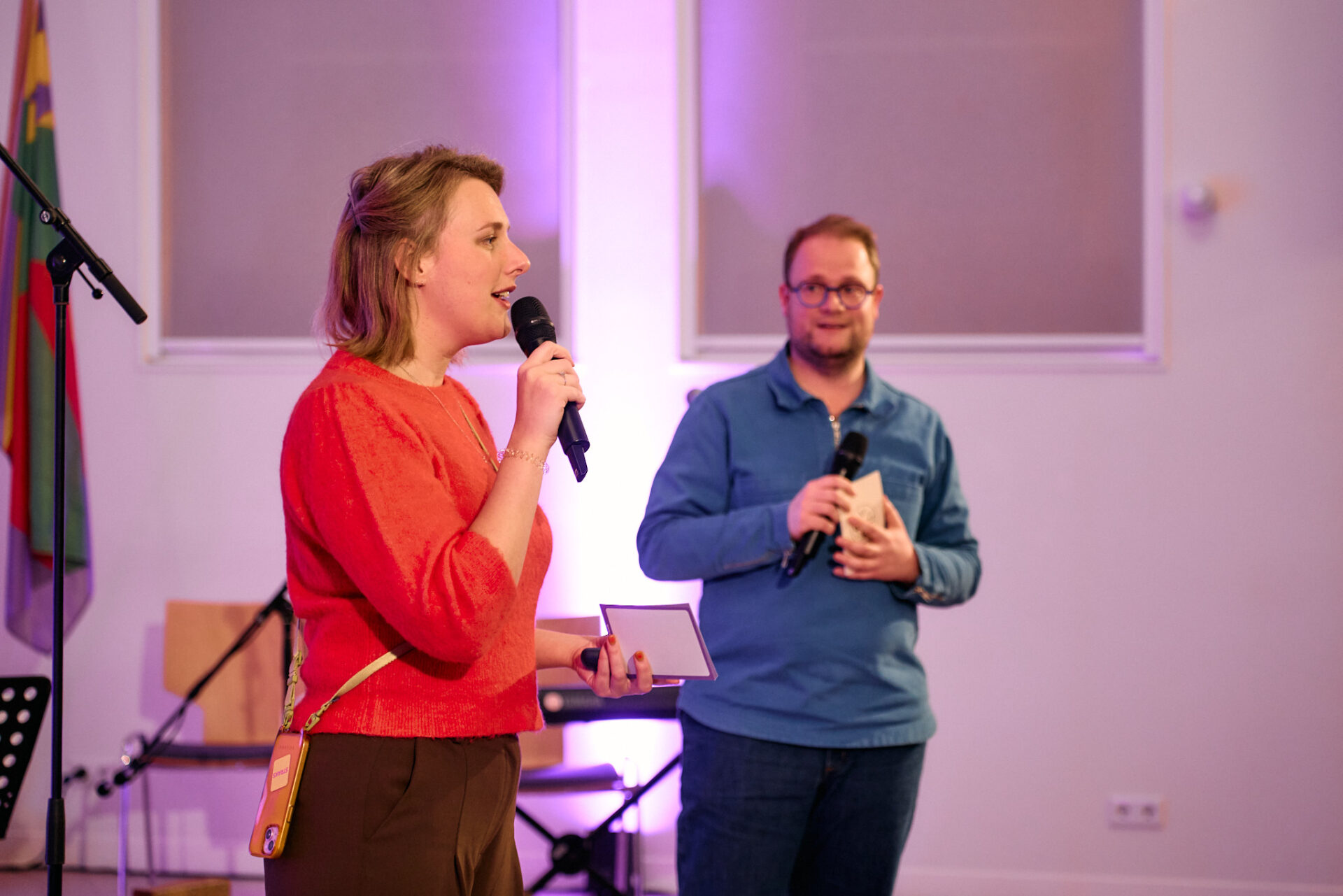Namens Gronings Vuur presenteren Sara Scholen en Jurgen van Tolie de avond. Kampvuur is de afsluitende avond van een traject waarin Gronings Vuur verhalen ophaalde bij inwoners van Midden-Groningen. Dat gebeurde op verschillende manieren. ,,Vanavond komen al die verhalen bij elkaar”, zegt Sara. ,,Daar proberen we een rode draad in aan te brengen. Klopt het? Missen we nog iets?”