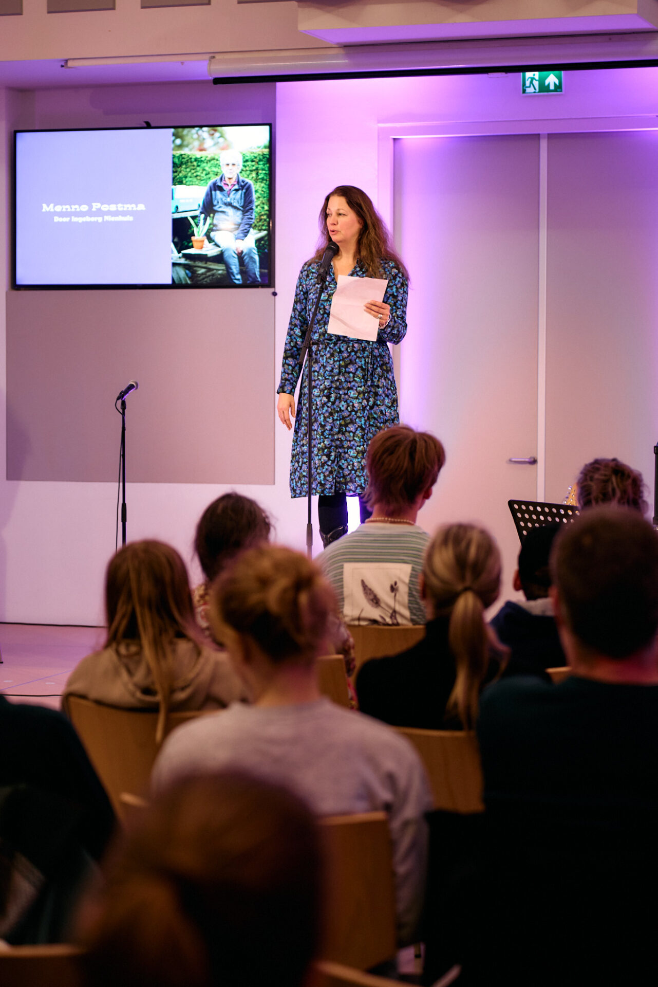 Het is ook de avond waarop vijf schrijvers van dichterscollectief Noordwoord een gedicht voordragen. Die maakten ze in het kader van Zuurstof, naar aanleiding van keukentafelgesprekken met Midden-Groningers. Vijftien gedichten in totaal. Ingeborg Nienhuis trapt af met haar voordracht van ‘Ver beriek‘, een gedicht dat ze schreef over Menno Postma.