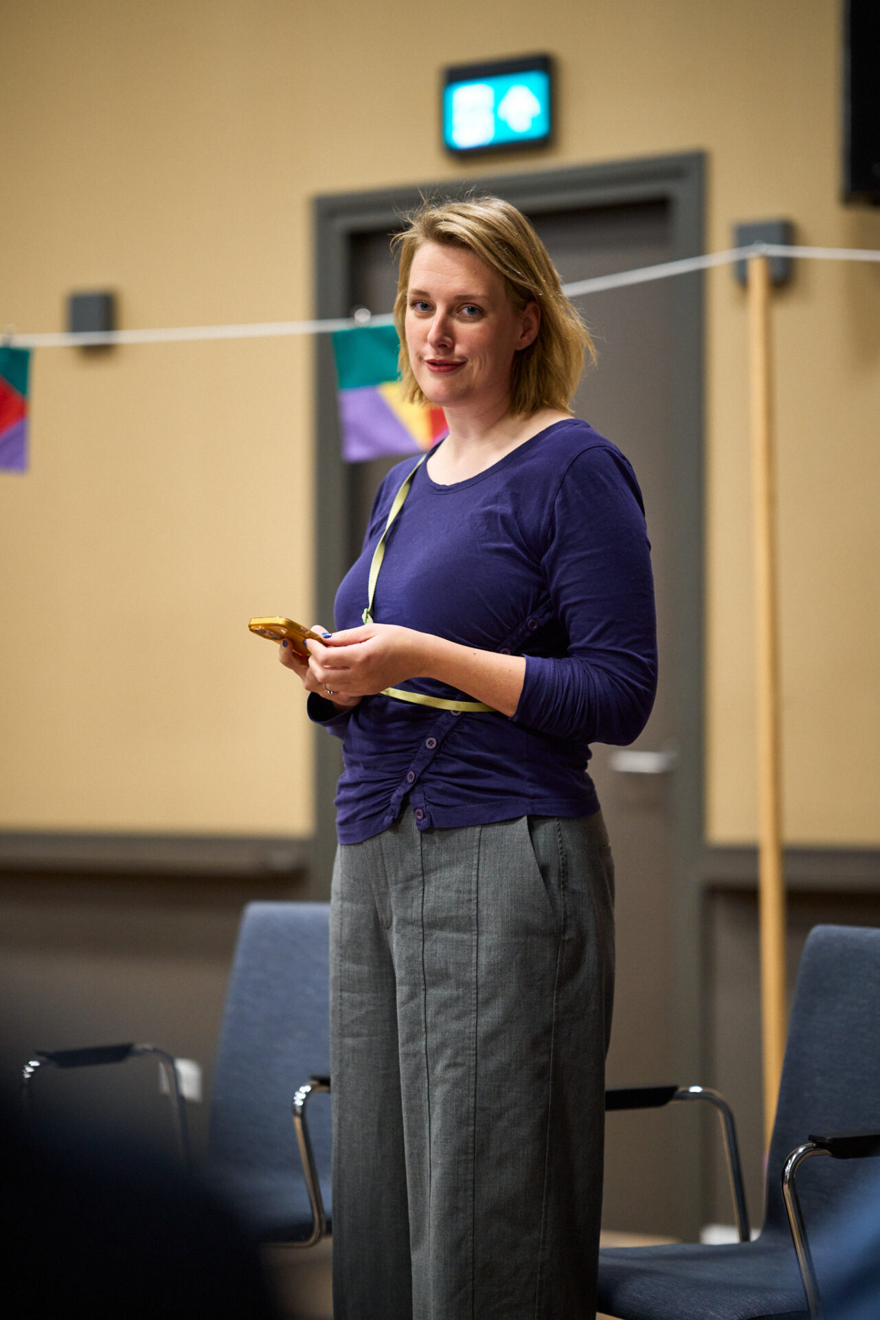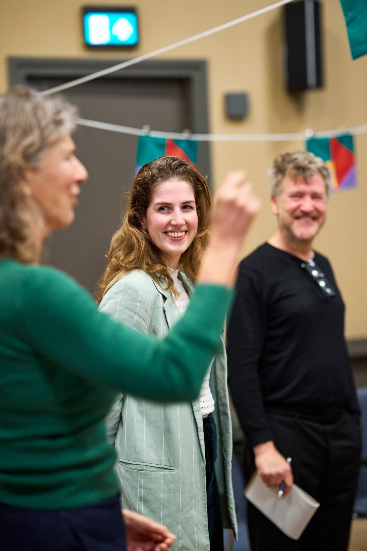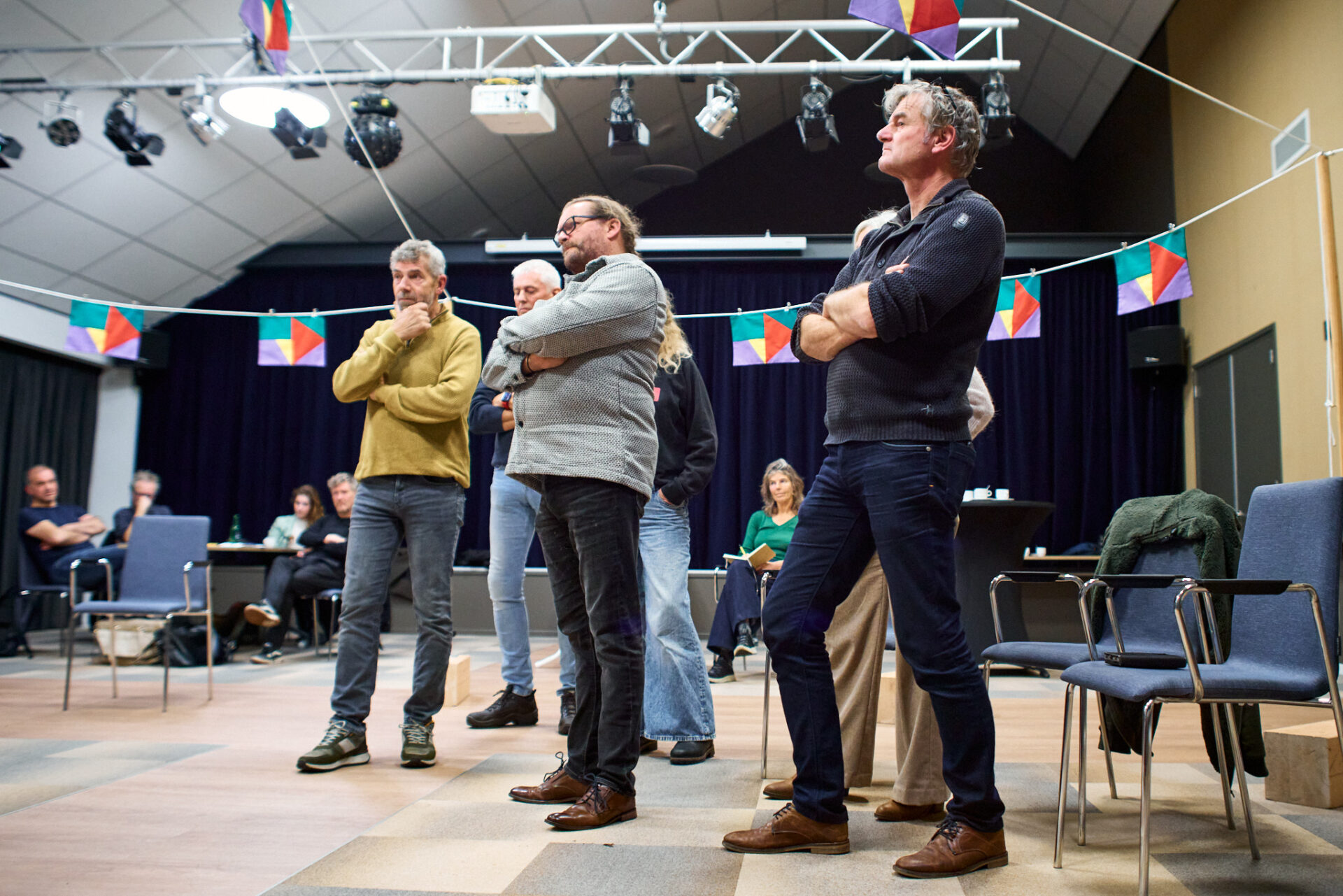 Theatermaakster Sara Scholten opent de avond in Dorpshuis De Ruyten in Froombosch samen met Gea Smidt, algemeen en artistiek leider van Gronings Vuur. ,,Jullie zijn benaderd door aanjager Kees Jan Luursema en de cultuurcoaches van Kielzog. We halen op wat er speelt in dit gebied”, beginnen ze. ,,Dan gaat het over leefbaarheid en klimaatverandering. Deze informatie is input voor het artistieke team dat een voorstelling maakt die eind mei, begin juni 2026 te zien is. Tijdens de Kampvuur-avond op 28 november in Sappemeer worden de contouren van deze voorstelling bekend, en ook welke inwoners al meedoen en wie we nog zoeken.”
