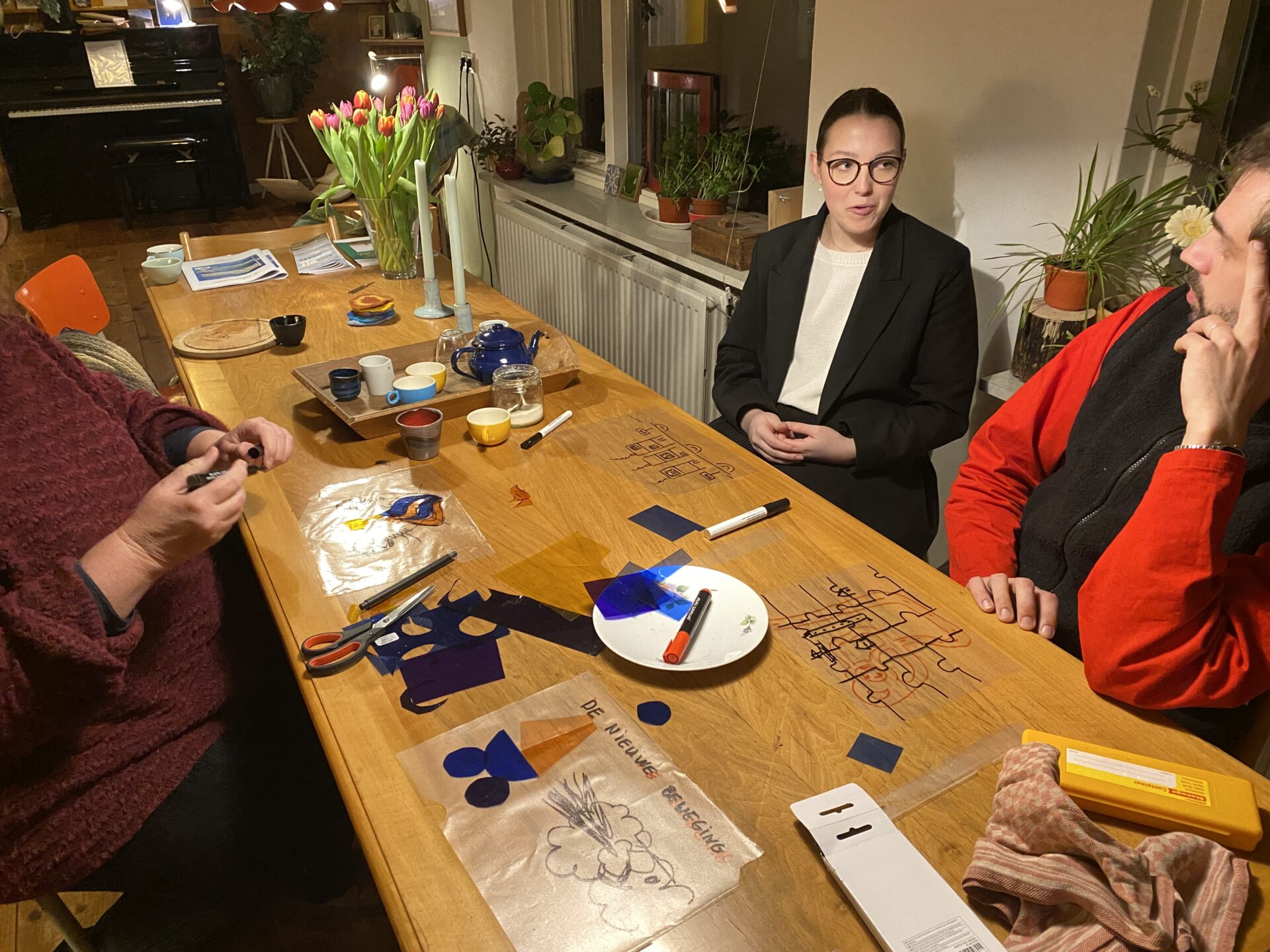 Deze zinnen vormen de kaders waar we op deze avond mee gaan werken. Sara geeft aanwezigen de opdracht om te gaan speeddaten. In een paar minuten te brainstormen over deze onderwerpen, met als vraag: ‘als we hier kunst van zouden maken, wat zou dat moeten zijn?’.