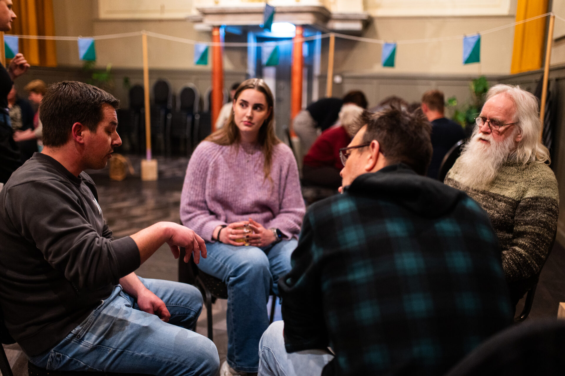 Sara vraagt iedereen vrijmoedig te spreken, De beleefdheid mag er af. Het is een avond met plek voor het uiten van wat jij vindt.