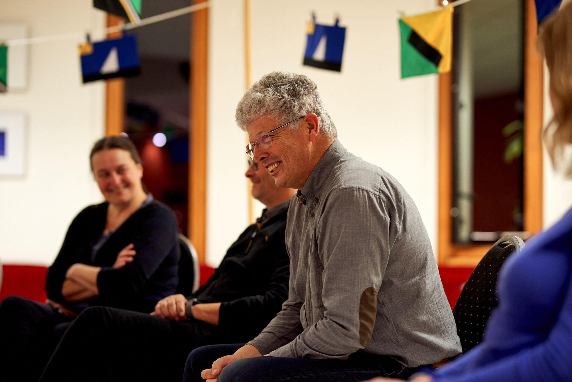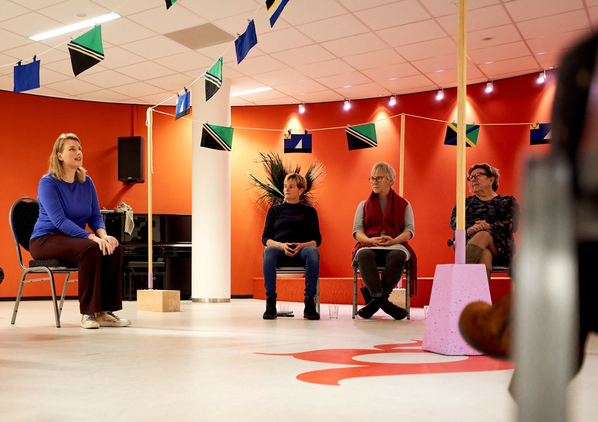 Een bont gezelschap van inwoners uit de Veenkoloniën kwam dinsdagavond 14 november bij elkaar in de Jonckherenzaal in Theater vanBeresteyn in Veendam. In een kleurrijke arena van ‘gemeentevlaggen’, genaaid door Gerrie Rekker en Elisabeth Kremer, gingen ze in gesprek over wat hen bezighoudt over leefbaarheid en klimaatverandering in hun eigen regio. Dat ging zo: