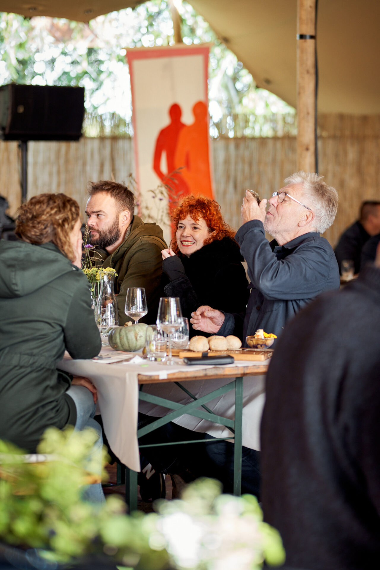 Die rijkdom werd zaterdag gevierd met ruim vijftig belangstellenden. Naast de heerlijke driegangen-lunch was er ruimte voor muziek, poëzie en uitleg over de producten. ,,Voedsel verbindt”, zei mede-initiator Gert Noordhoff, die de hoop uitsprak dat hiermee een nieuwe traditie is geboren.